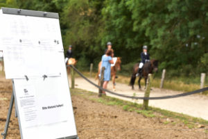 Michaela Haacke, Freizeitwartin des Landesverbandes, organisierte die Informationen für die Starter, sammelte Richtzettel ein und hing die Starterlisten aus. „Wir brauchten eine Menge Schilder, die alle laminiert werden mussten, damit die Corona Maßnahmen auch für alle erkennbar sind“ , erklärte Michaela „das war eine Menge Arbeit“. Aber es hätte sich mehr als gelohnt. „Die Wertschätzung der Reiter, endlich wieder Turnierluft schnuppern zu können, hätte die ganze Arbeit mehr als bezahlt gemacht.“