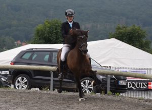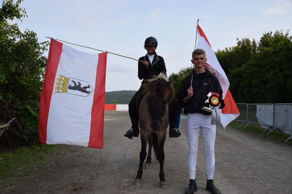 Martha Hasler hatte erst etwas Pech, weil sich ihr zweites Pferd kurz vor Abfahrt Richtung Hessen noch verletzte. Also alle Konzentration auf die Prüfungen mit Jóni und zeigen, dass Berlin-Brandenburg nicht nur auf der Passstrecke schnell kann, sondern auch im Gelände: Nach einem mutigen und gleichzeitig umsichtigen Ritt sind sie die neuen Deutschen Jugendvizemeister im Geländeritt. Und das zwischen zwei Reiterinnen aus Baden-Württemberg, die das entsprechende Trainingsgelände vor der Haustür haben. Steigungen wie im Ellenbacher Wald gibt es in Brandenburg halt nicht, aber Flachland-Tiroler Joni hat sich davon nicht beeindrucken lassen! Außerdem wagten sie sich in ihr erstes Passrennen und hatten immerhin einen gültigen Lauf.