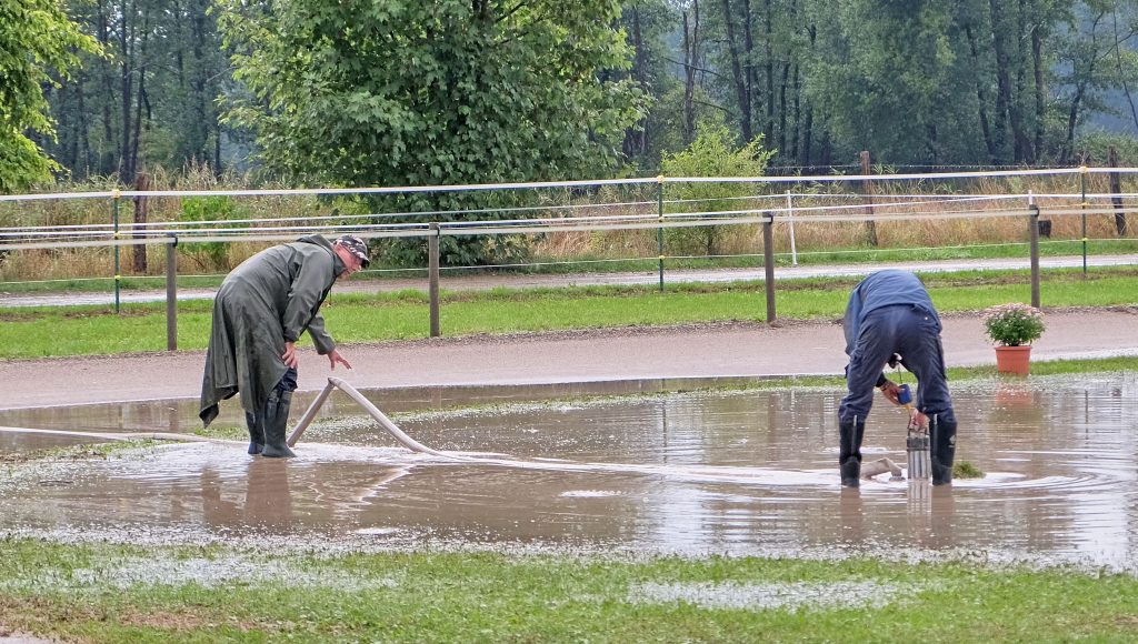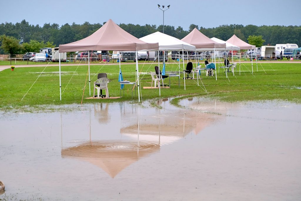 Als der Start zu den ersten Prüfungen für die Landesverbandsmeisterschaften Berlin-Brandenburg vom 26. bis 28. August 2022 freigegeben werden sollte, zeigten sich die nordischen Wettergottheiten Freyr und Thor von ihrer grimmigsten Seite. Starkregen mit Blitz und Donner verwandelte die gepflegte Anlage des Schleuener Hofes über mehrere Stunden in eine Seenlandschaft. Das eingespielte Organisationsteam, das seit 2004 regelmäßig Turniere ausrichtet, rückte spontan mit Spaten an, um Drainagegräben zu ziehen, während im Richterwagen diskutiert wurde, ob das Turnier womöglich abgesagt werden müsste.