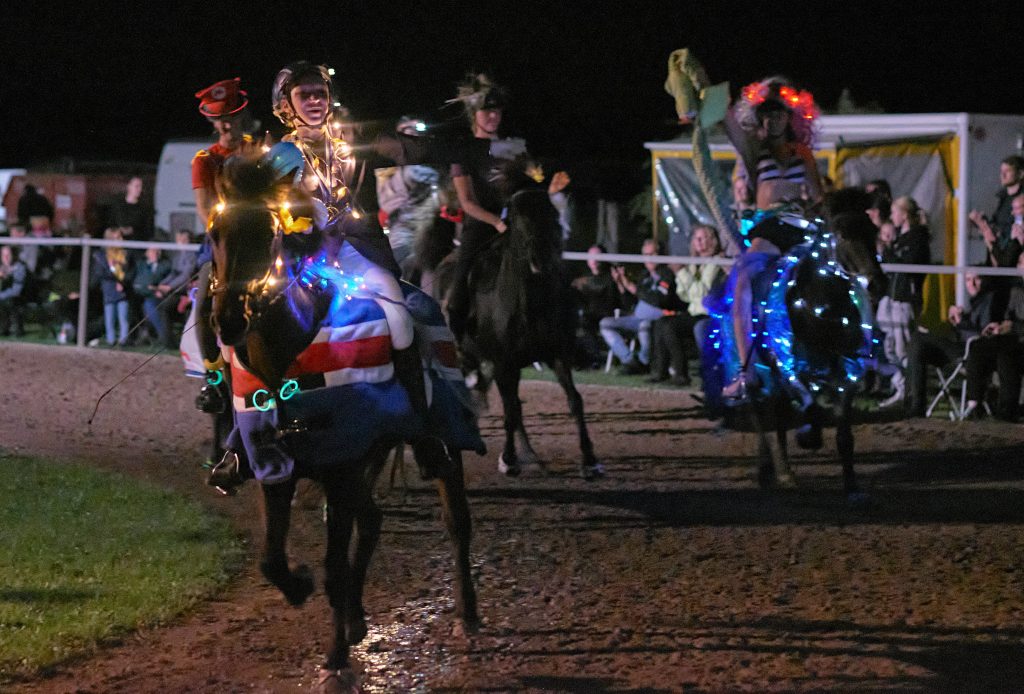 Einen bunten Anblick mit liebevoll gestalteten Verkleidungen als Biene, Teufel auf dem Drachen und Harry Potters Freundin Hermine bot der Kinderkostümtölt, aus dem Louisa Held mit Vídalín von der Rehwiese als Erstplatzierte hervorging. Im Mitternachtstölt siegte Helena Zengel, die mit Kolka frá Bakkakoti als Jón ‚Nonni‘ Steinbjörnsson auftrat – wer ihn einmal hat reiten sehen, weiß, dass keine Verwechslung möglich ist. Für das beste Kostüm erhielt Annerike Schönke schier unendlichen Beifall ihrer Fans als Mario Kart mit Balbó von Jóreykur. Eine rasante Vorstellung führte Julia Winter mit Glaukur vom Sigurdshof zum Sieg im Fahnenrennen.