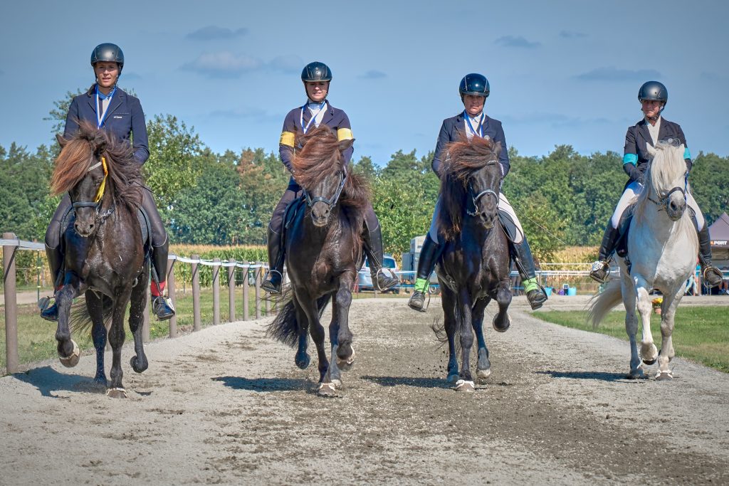 Von der Führzügelklasse bis zum Töltpreis gab es zahlreiche eindrucksvolle Ritte zu sehen. Beim rasanten Fahnenrennen fieberte das Publikum ebenso lautstark mit wie beim Triathlon, der dieses Jahr erstmals das beliebte Hobby Horsing als vegane Alternative zum Pferdesport enthielt.